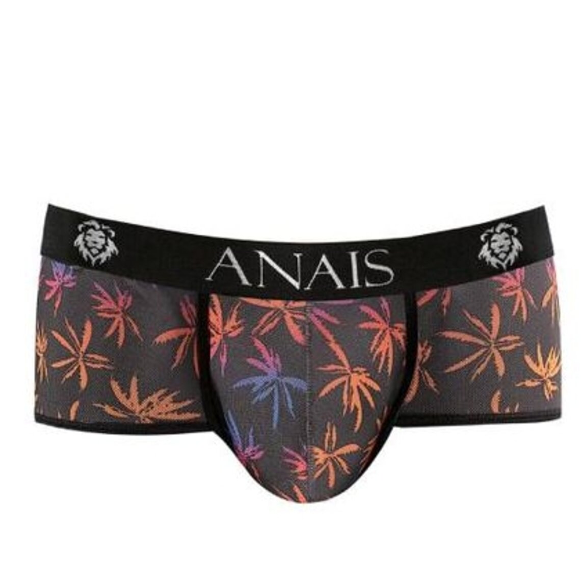 KÜHLEN Weicher schwarzer Tüll mit buntem Print, Feiertagspalmen Merkmale Slip mit sportlichem Schnitt aus hochwertigem Material kürzere Beine perfekte Anpassung an den Körper Komposition 95 % Polyamid 5 % Elasthan Anais Apparel die sexy Dessous der Welt seit 2003