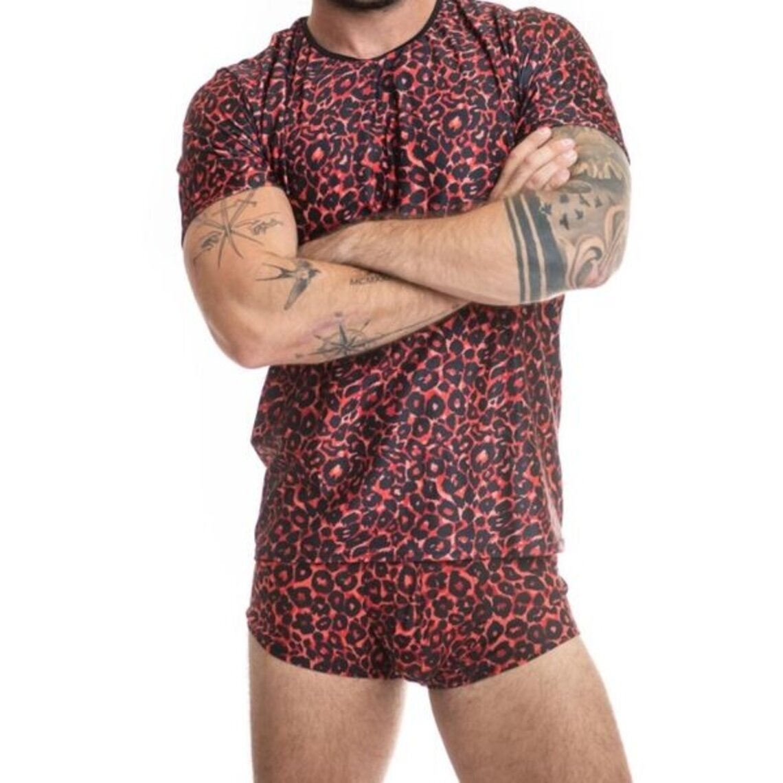 STAMMES Weiche rote Mikrofaser mit schönem, ausdrucksstarkem Animal-Print Merkmale T-Shirt Perfekte Anpassung an den Körper Komposition 80 % Polyamid 20 % Elasthan Anais Apparel die sexy Dessous der Welt seit 2003