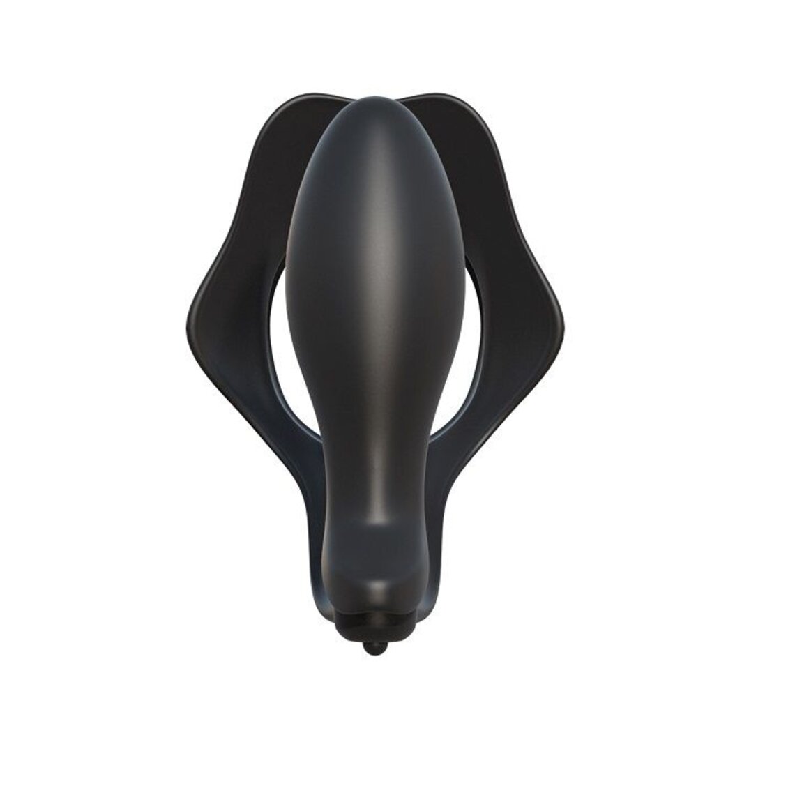Penisring im Rüstungsstil mit Plug zur analen Stimulation.