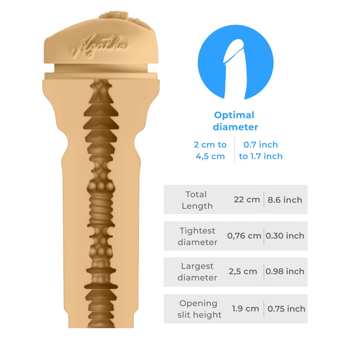 Feel Agatha – Der FeelAgatha Masturbator verfügt über einen engen, realistischen Eingang, der Agatha selbst nachempfunden ist, gefolgt von einem Muster aus spiralförmigen Rillen, die bei jedem befriedigenden Stoß necken, greifen und stimulieren. Hergestellt aus hochwertigen, körperverträglichen Materialien, bietet FeelAgatha ein ultra-realistisches Erlebnis, das Sie Agatha näher bringt als je zuvor. Vollständig kompatibel mit Keon, dem automatischen Masturbator, PowerBlow, der Oralsex-Maschine, und Control, dem interaktiven Controller, synchronisiert sich FeelAgatha perfekt mit Ihren Lieblingsszenen und bietet ein intensives, synchronisiertes Vergnügen, das auf Ihren persönlichen Stil zugeschnitten ist.