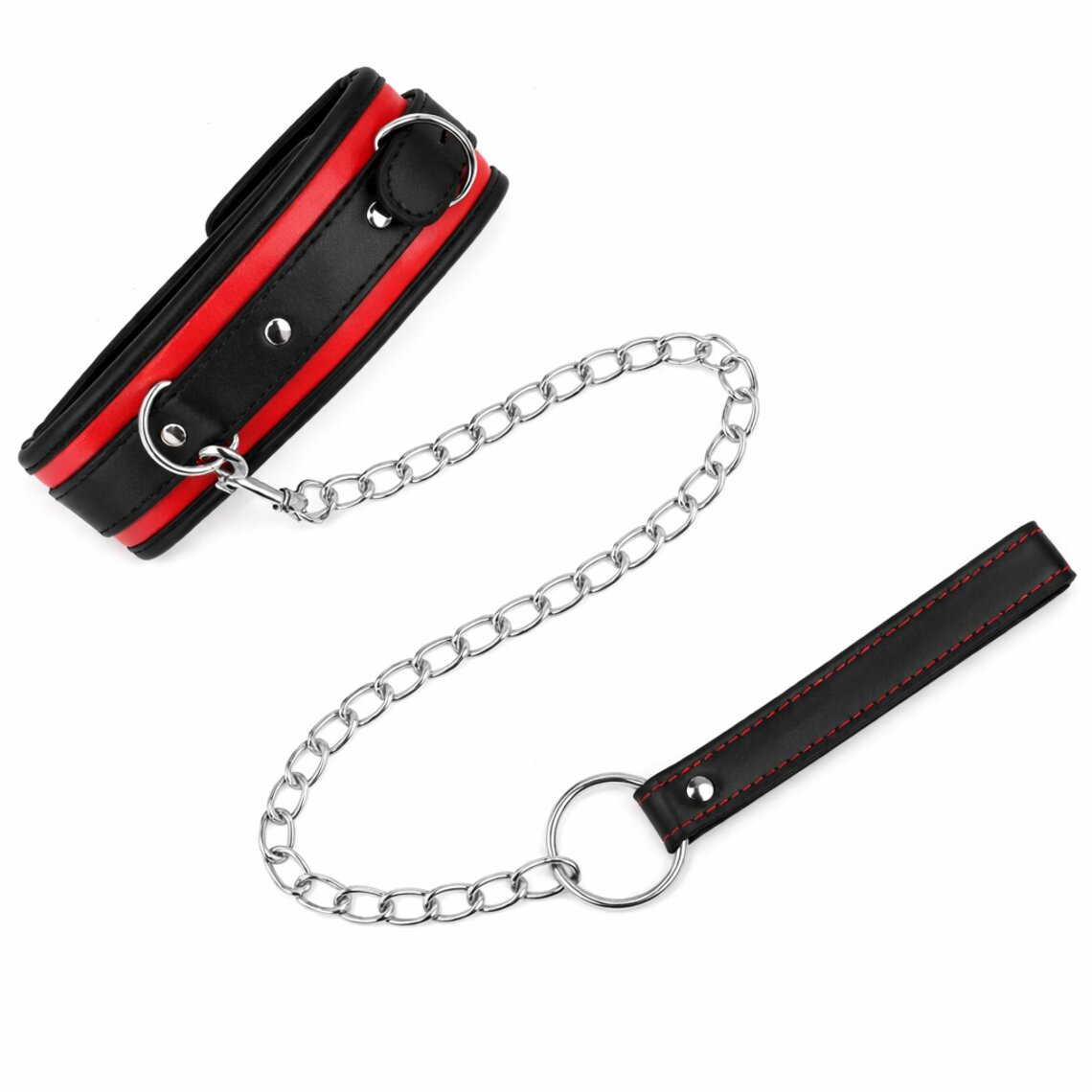 Rot-schwarzes Bondagehalsband mit 65 cm Leine. Verstellbar von 36,5 bis 50 cm.