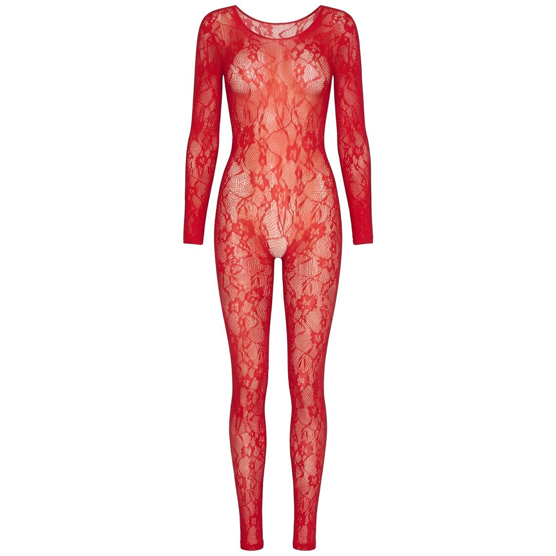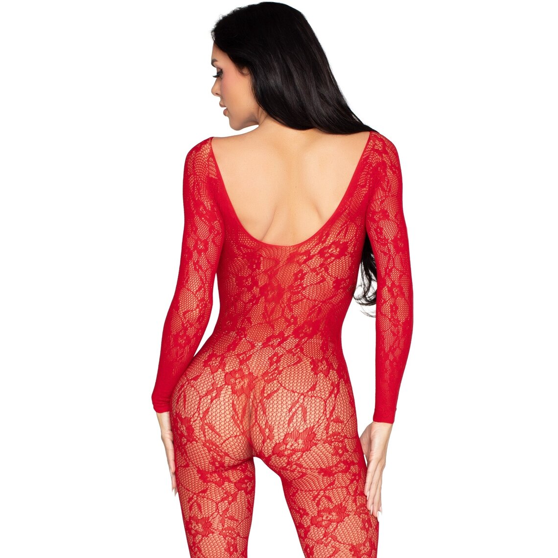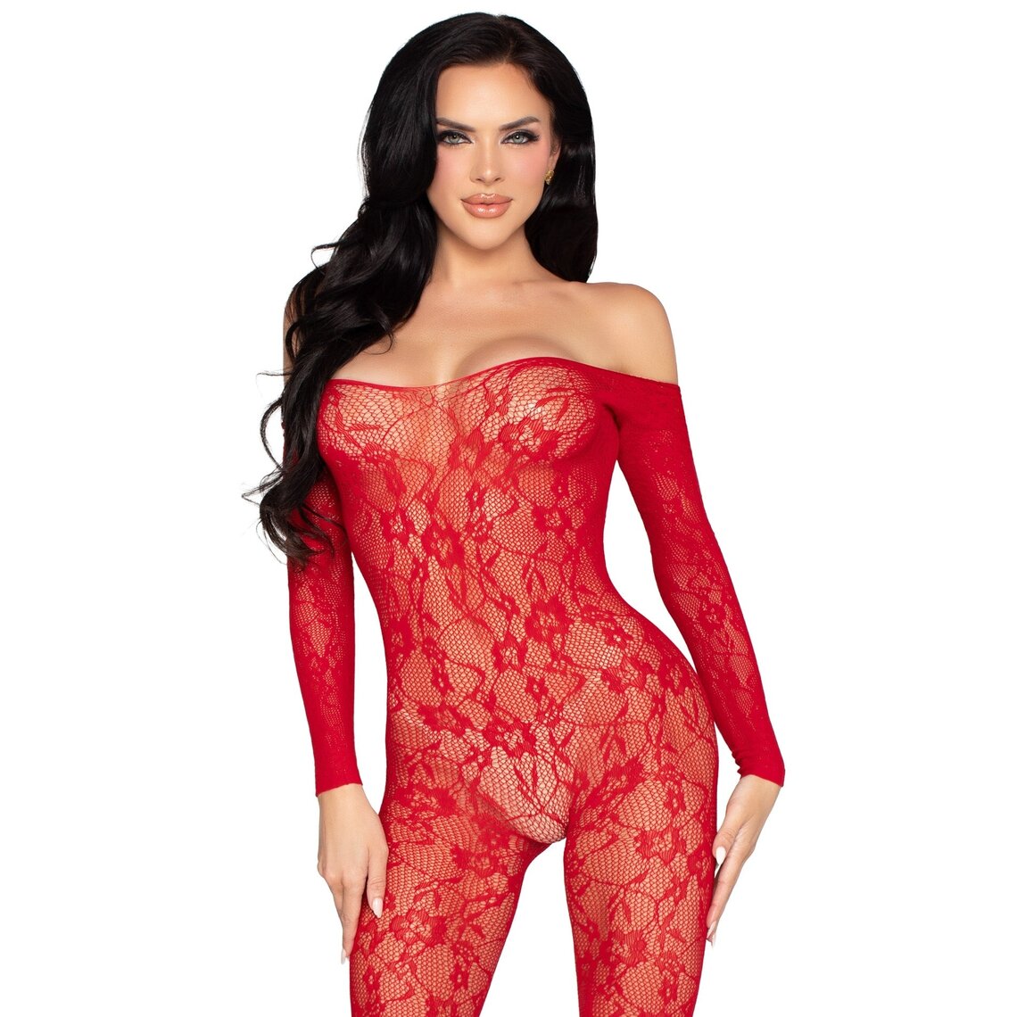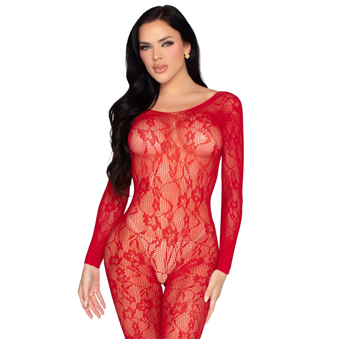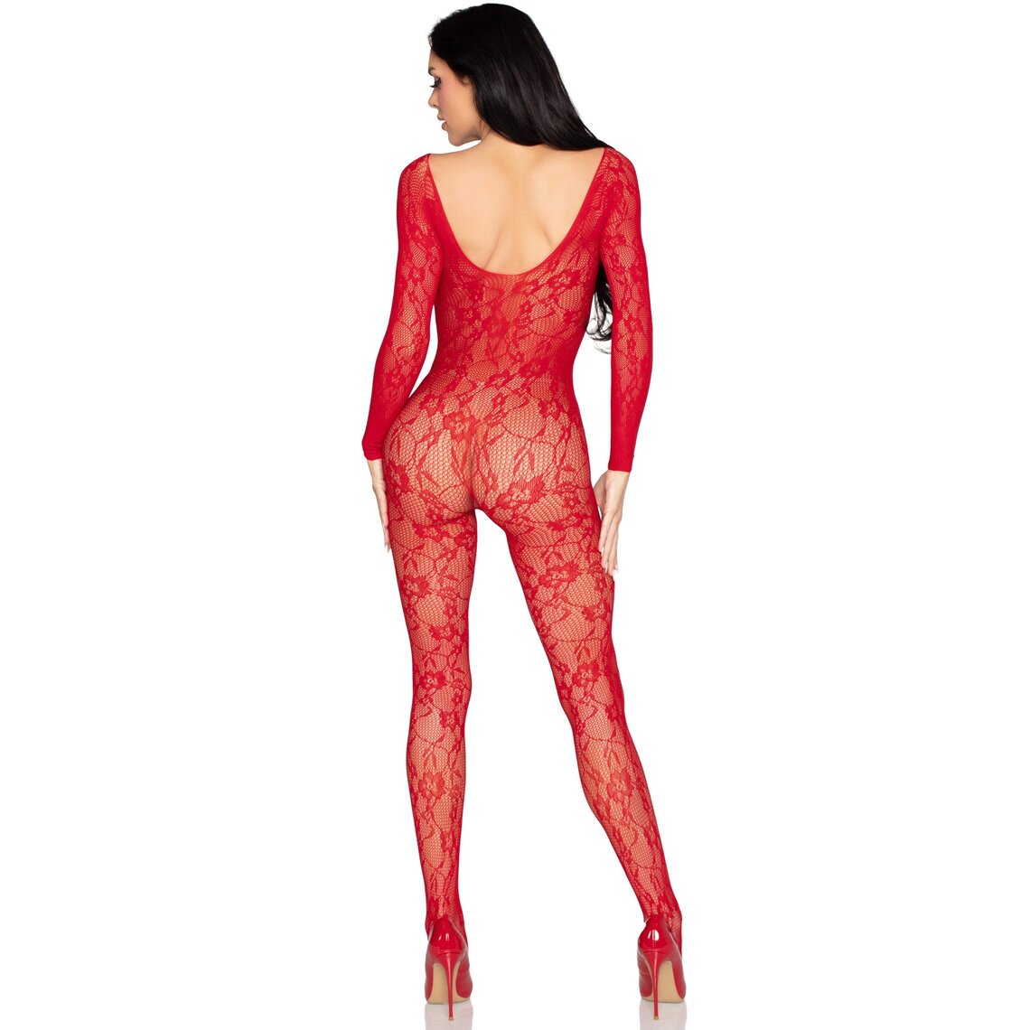 • Leg Avenue - Superelastischer Bodystocking aus Floraler Spitze (Rot)