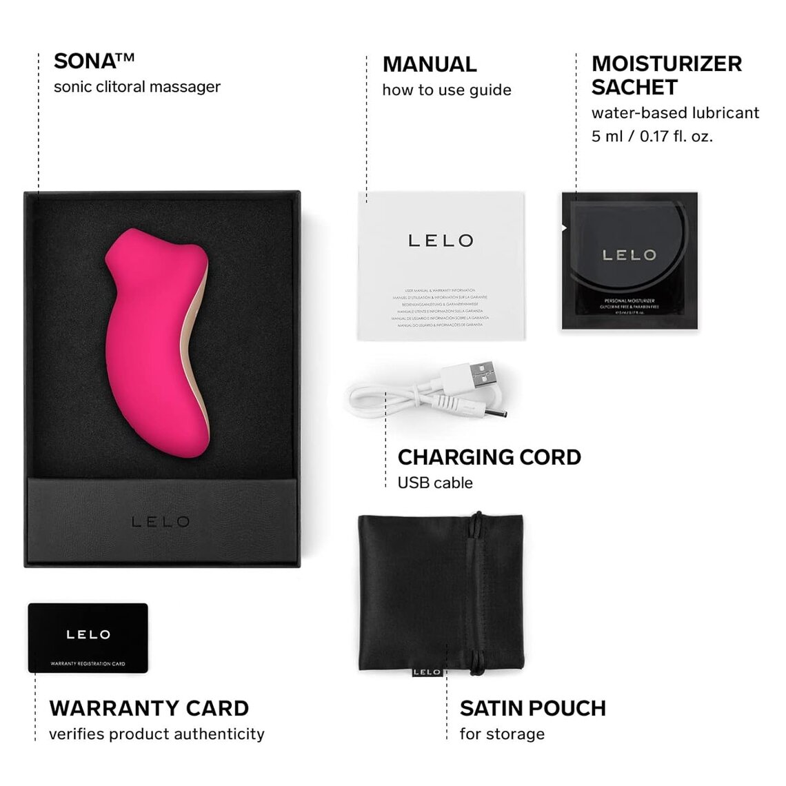 • ◾  USB-wiederaufladbar. Mit dem mitgelieferten USB-Ladekabel kannst du deinen SONA überallhin mitnehmen.