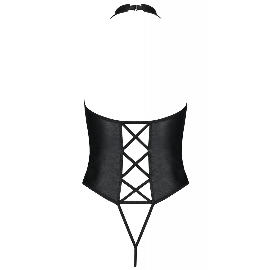 Heben Sie Ihren Stil mit dem Nancy Body von Passion hervor – ein Kleidungsstück, das Eleganz und Charakter in einem auffälligen Design vereint. Die Lederoptik und der tiefe Ausschnitt mit gekreuzten Trägern schaffen eine raffinierte und verführerische Silhouette, perfekt, um selbstbewusst aufzufallen.