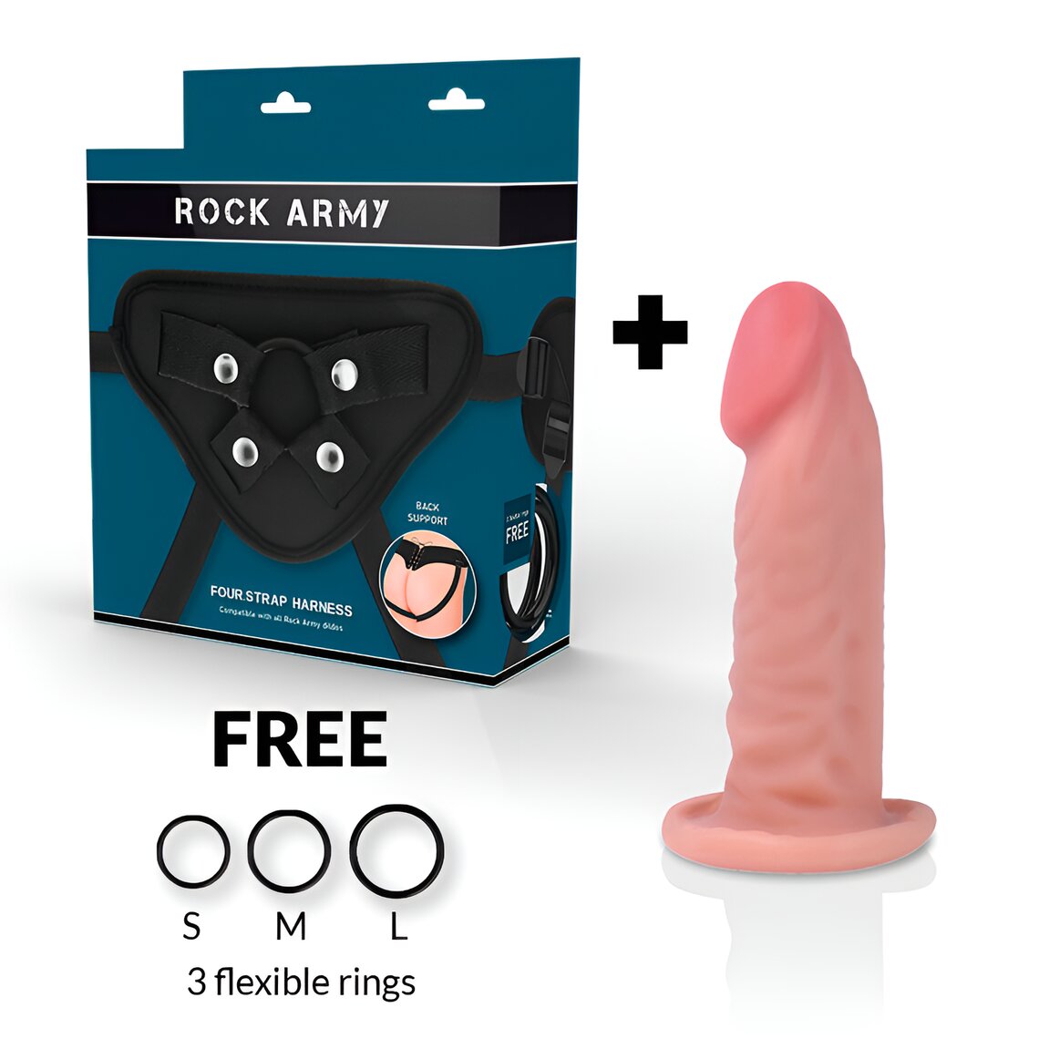 Rockarmy Tiger Pack - Harness + Realistischer Dual Density Dildo 14 cm