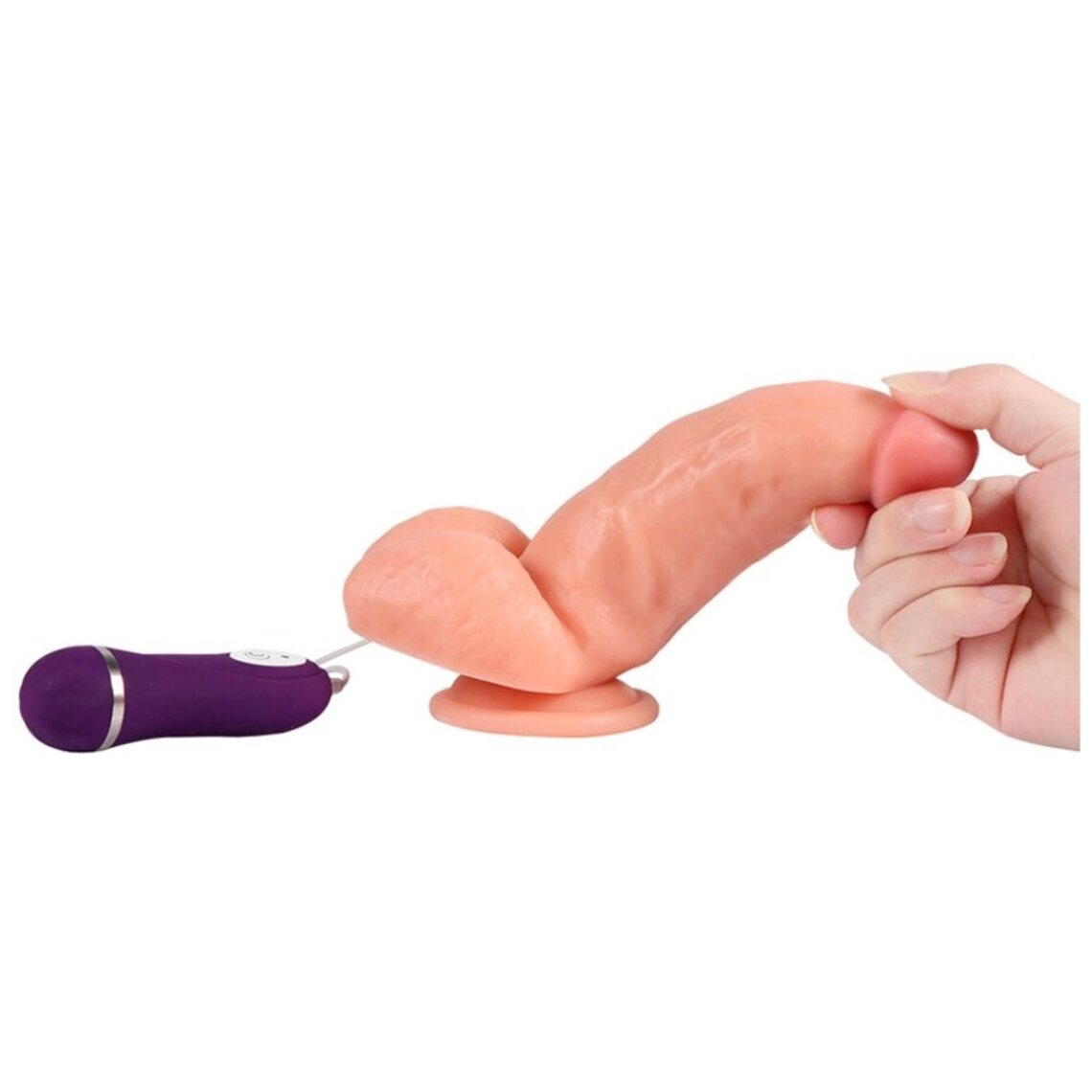 Realistischer Penis mit 16 cm Länge, Vibration und Saugnapf. Kabelgebundene Fernbedienung.