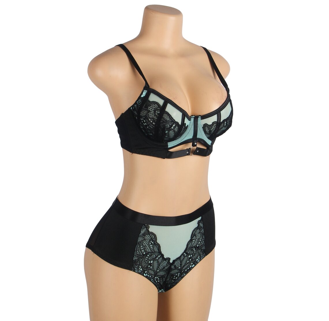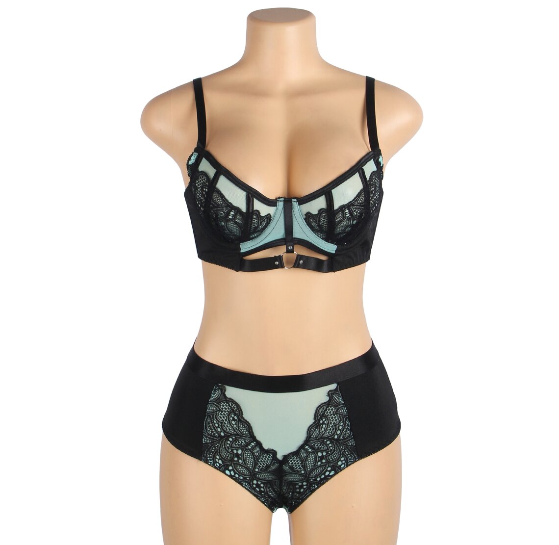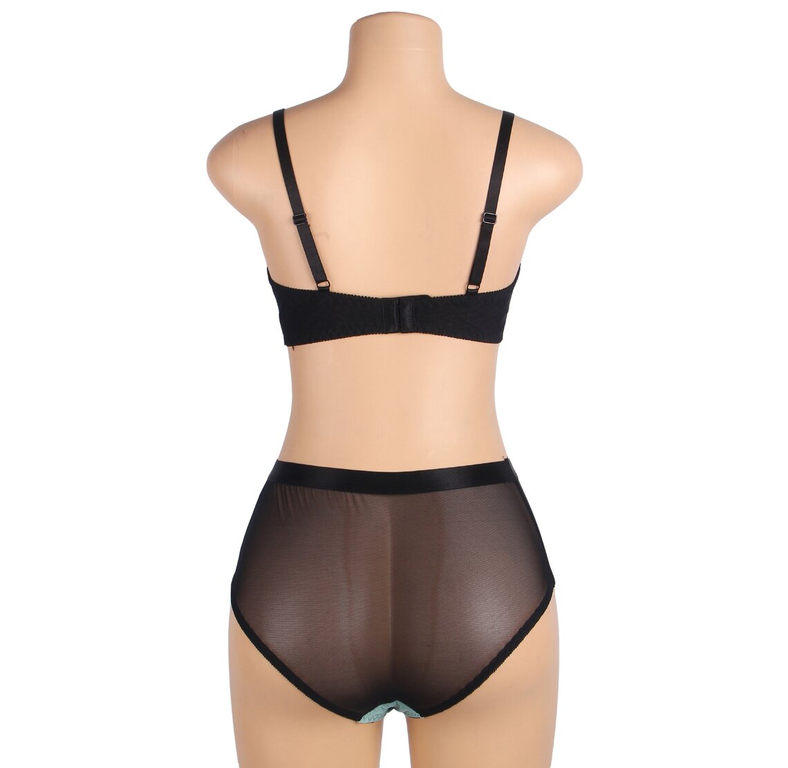 Push up Dessous Set mit floraler Spitze und transparentem Mesh