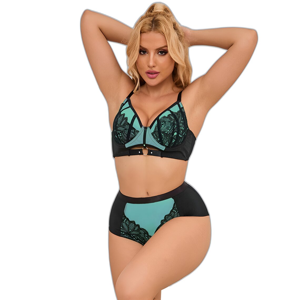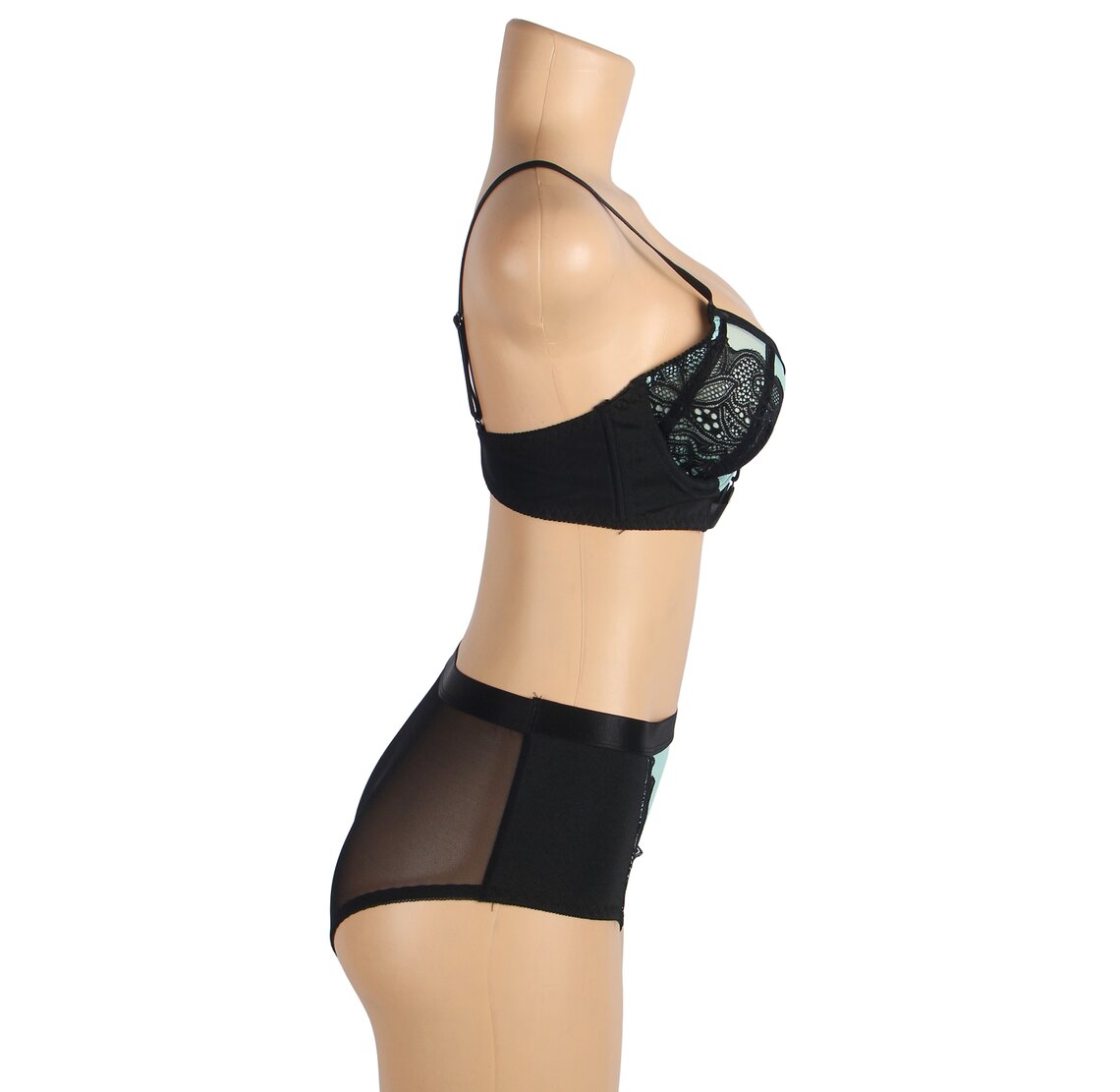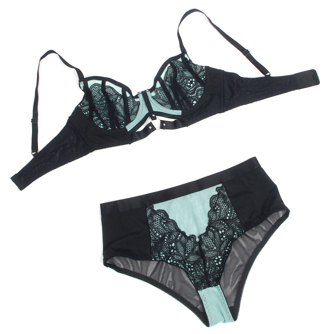 Push up Dessous Set mit floraler Spitze und transparentem Mesh