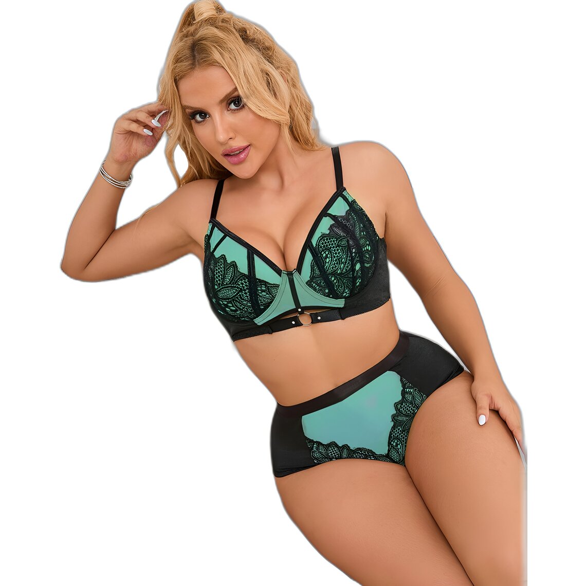 Entdecken Sie die perfekte Balance zwischen Raffinesse und Sinnlichkeit mit diesem eleganten Set von SUBBLIME. Es wurde entworfen, um die weibliche Figur zu betonen, und kombiniert zarte Spitze mit transparentem Netzstoff in einem attraktiven Grünton mit schwarzen Kontrasten, die für eine moderne und edle Ausstrahlung sorgen.