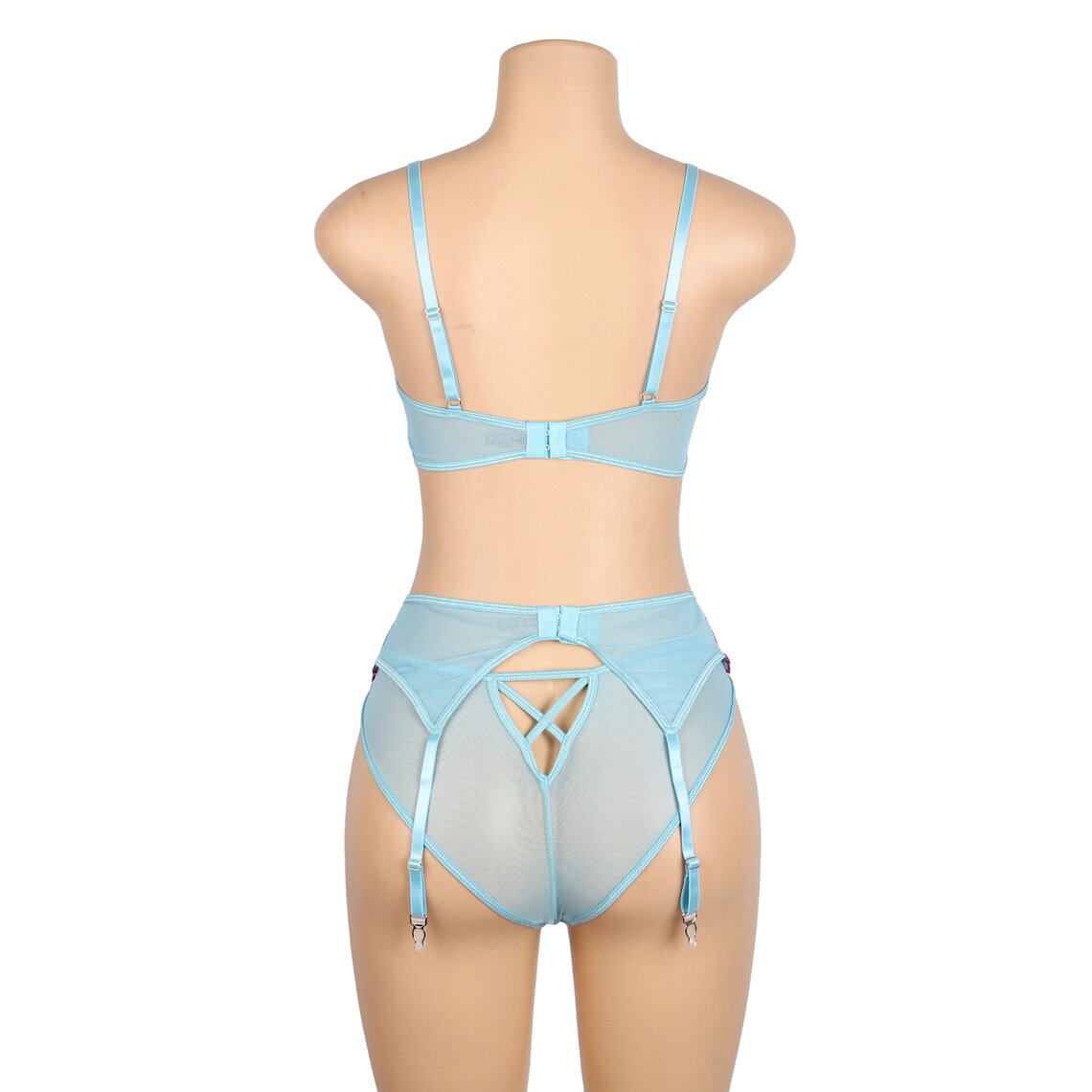 • ◾  3-teiliges Set: BH, Strumpfhaltergürtel und passender Slip.