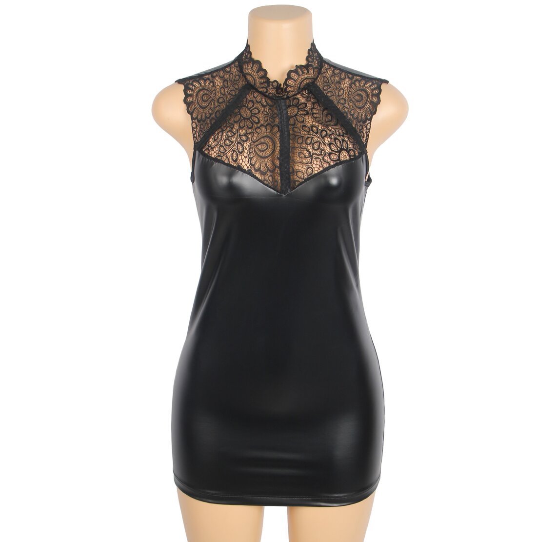 Entdecken Sie die perfekte Balance zwischen Eleganz und Provokation mit diesem raffinierten Kleid von SUBBLIME. Ein Kleidungsstück, das entworfen wurde, um Ihre Silhouette mit einem mutigen Stil zu betonen, indem es die visuelle Wirkung von Lederoptik mit der Zartheit von Spitze kombiniert.