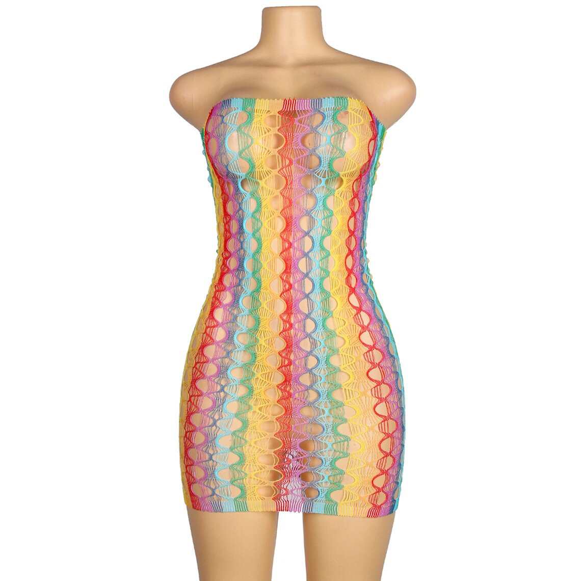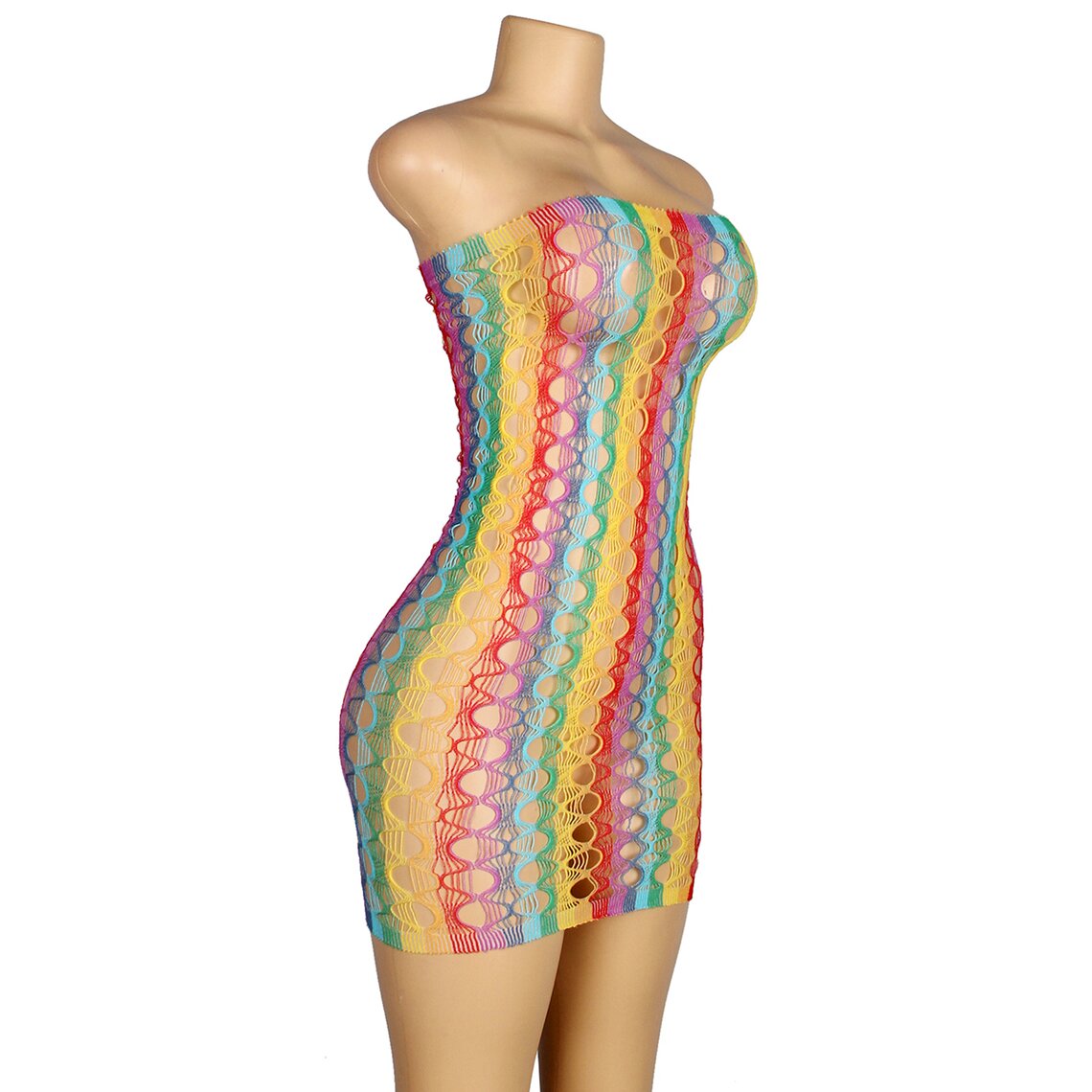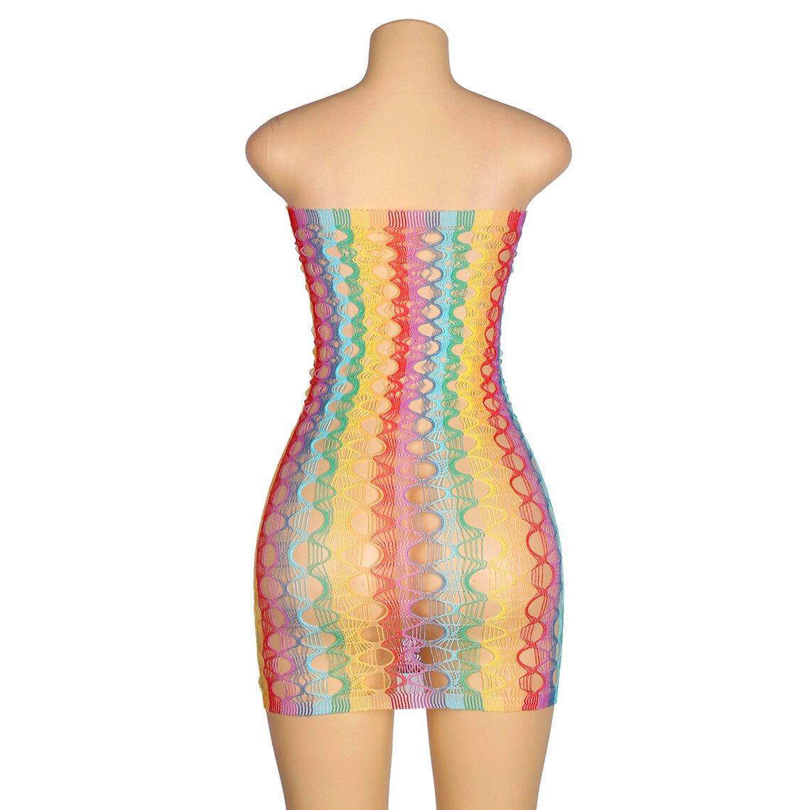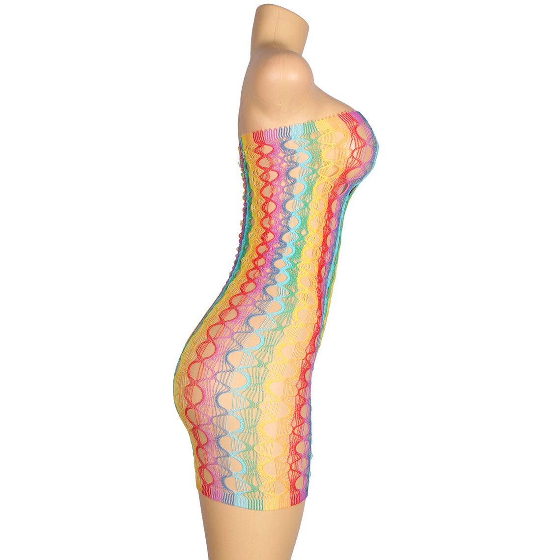 Sku codeSUBBLIME-952365-RAINBOW-BARE-SHOULDER-FISHNET-DRESS-ONE-SIZE