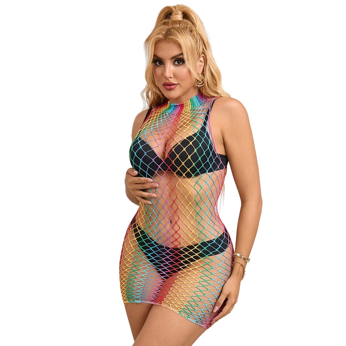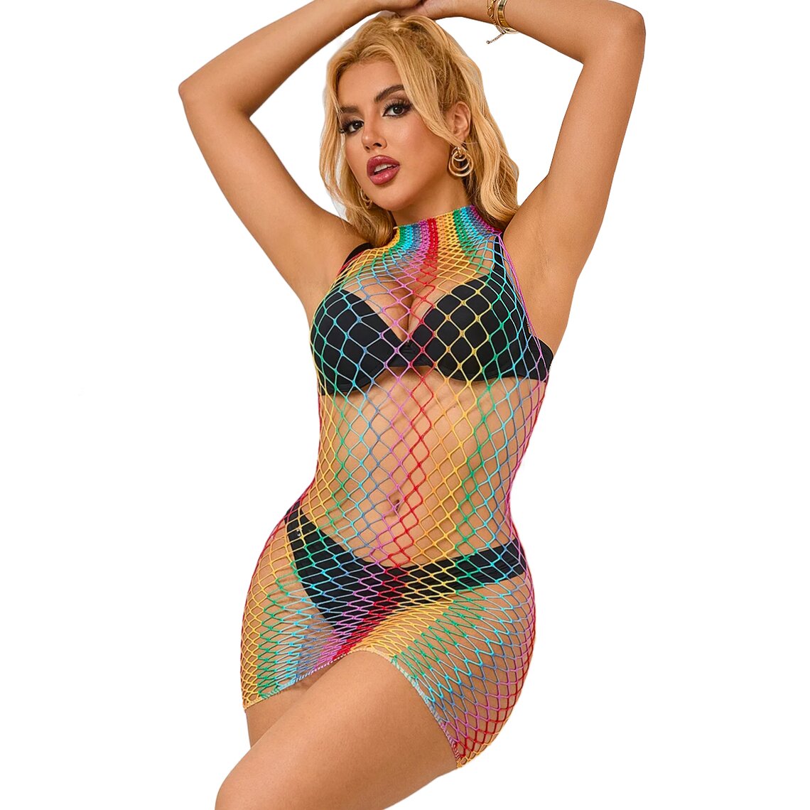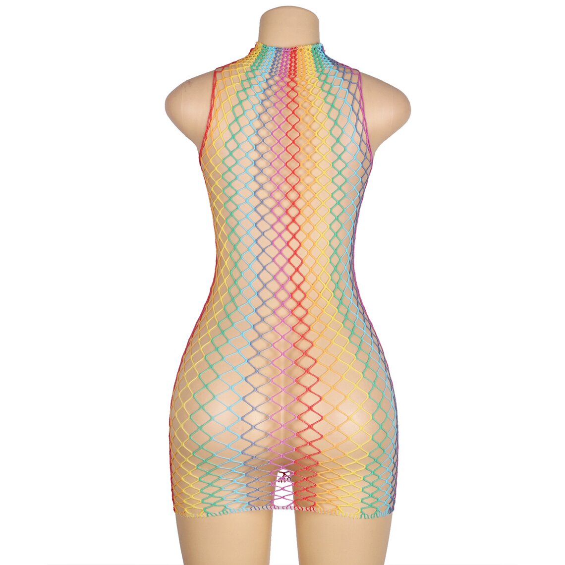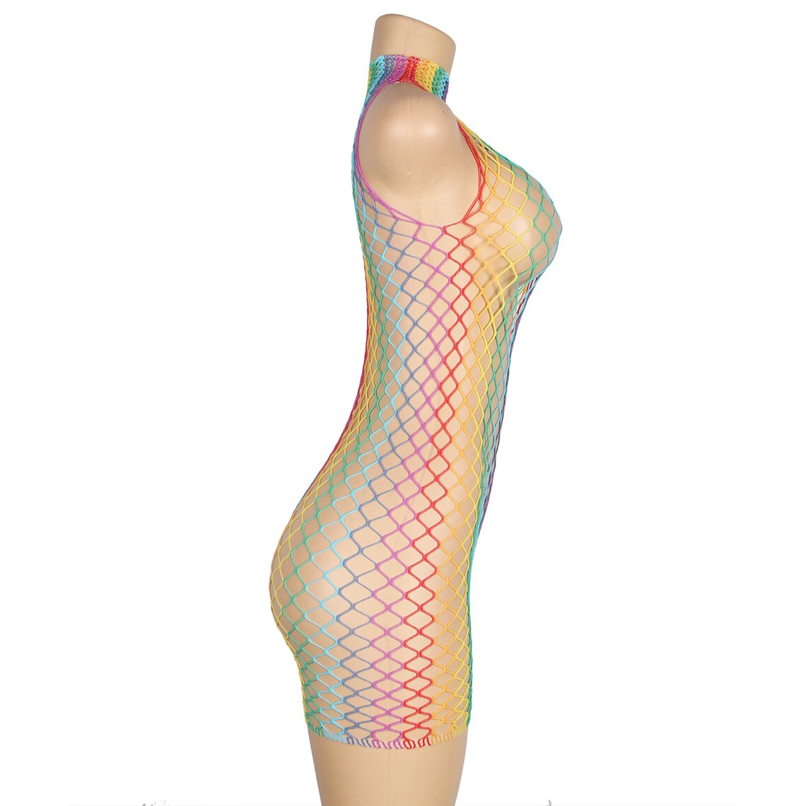 Sku codeSUBBLIME-952433-RAINBOW-HIGH-NECK-SLEEVELESS-FISHNET-DRESS-ONE-SIZE