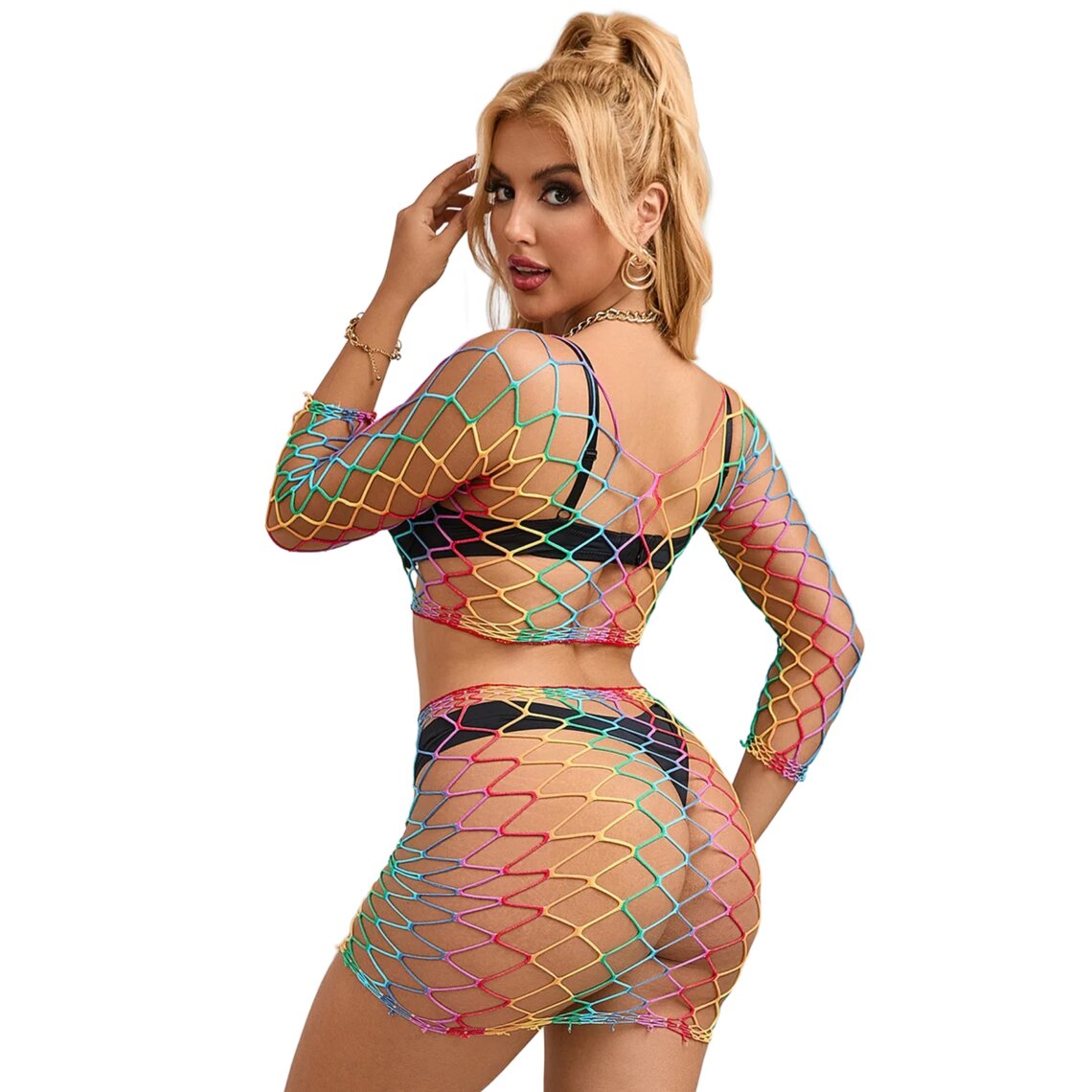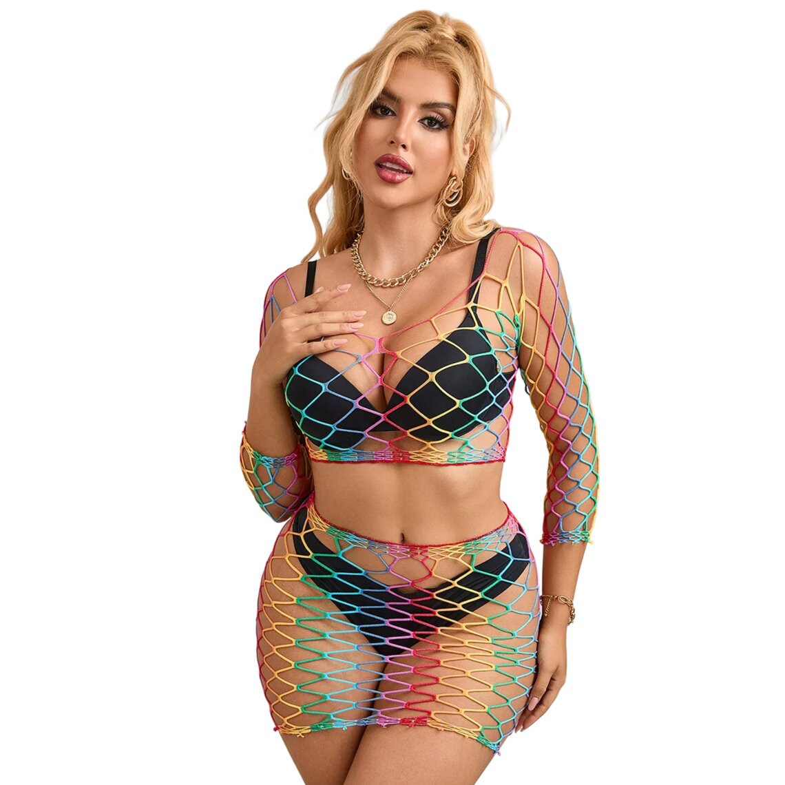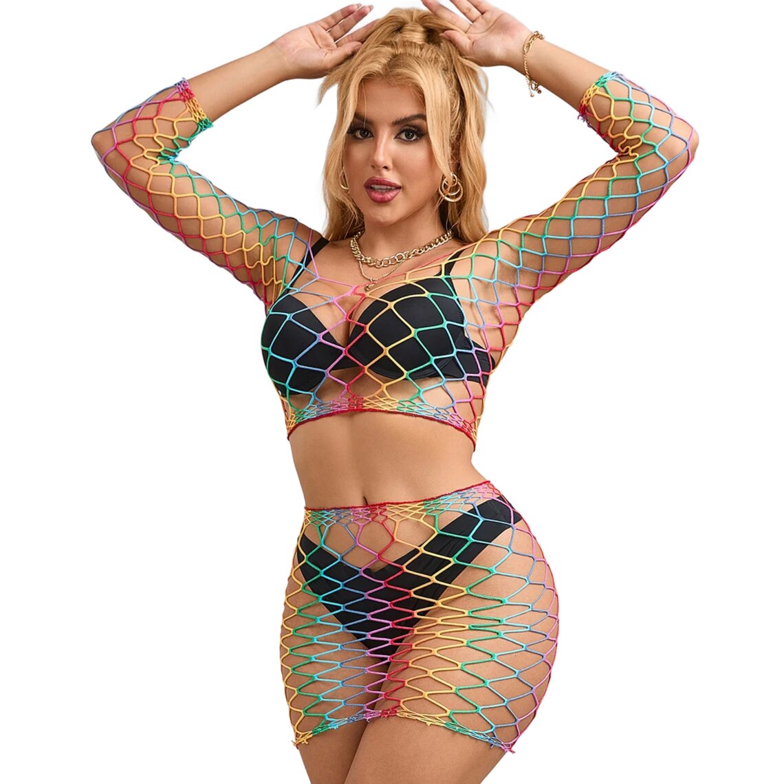 Sku codeSUBBLIME-952440-2PIECE-FISHNET-SET-LONG-SLEEVE-RAINBOW-ONE-SIZE